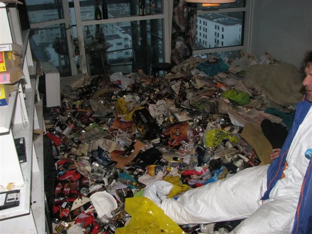 rankaisija tuon asian kiteyttikin hyvin, noita näkee yllättävän paljon töissä. joskus huoneiden välillä kulkee vaan sellainen "kävelytie", mitä pitkin sitten pääsee toiseen huoneeseen - ja se "kävelytiekin" on liiskaantunut kaikesta paskasta mikä sen alle on jäänyt. muu osa kämpästä onkin sitten täynnä kaikkea mitä ihmismieli ei voi edes kuvitellakaan.