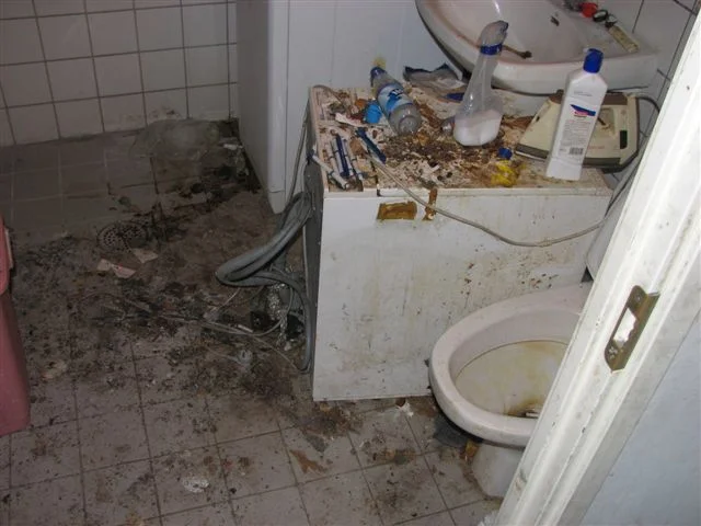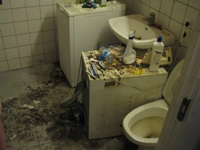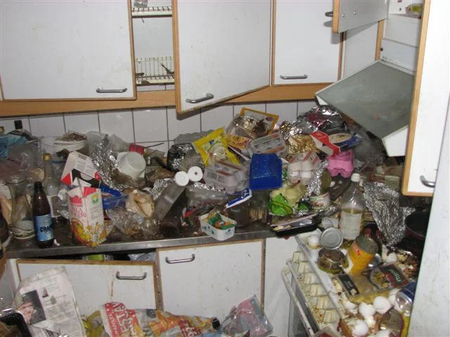 Tuollaisia kuvasarjan kämppiä löytyy aina silloin tällöin omassa työssäni. Paras oli kun huoltomiehen kanssa kiersin paikallisen yo-kylän yhden kerroksen asunnot läpi tarkastamassa palohälytyksen takia, niin samasta kerroksesta löytyi heti kaksi tuollaista "paskakämppää". Toisessa oli asukas kotona, nuori opiskelijatyttö, joka selitti sekavana ettei ole kerennyt kiireiltään siivoamaan... just joo!