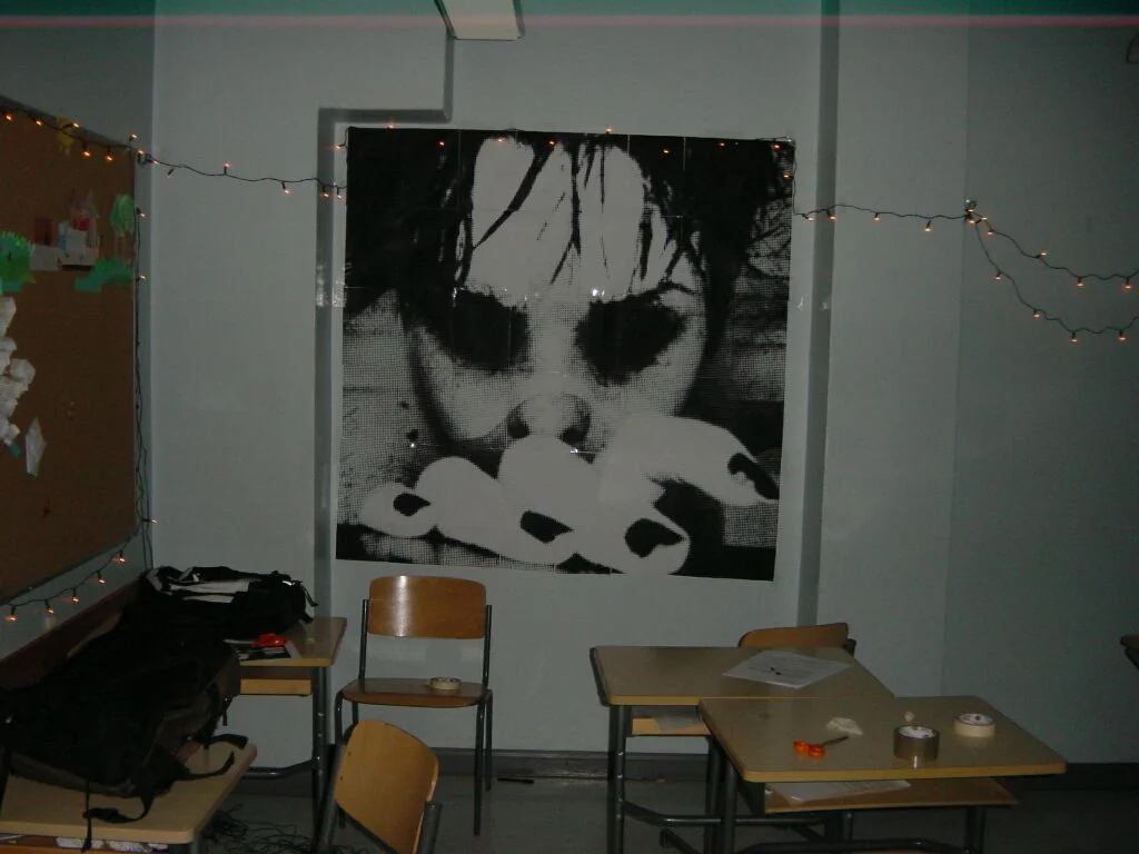 Tällänen "komistaa" seinää. Tulostimeen tuli joku häikkä ja toi teki suurimman osan printeistä haaleina... No kuhan pääsee kouluun niin saa tehtyä paremman. :)