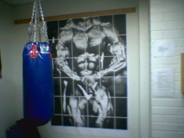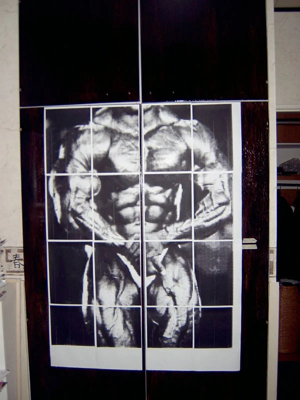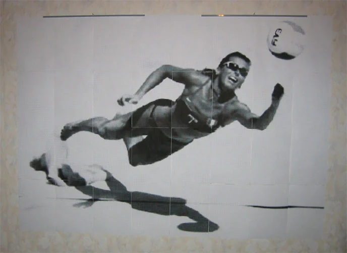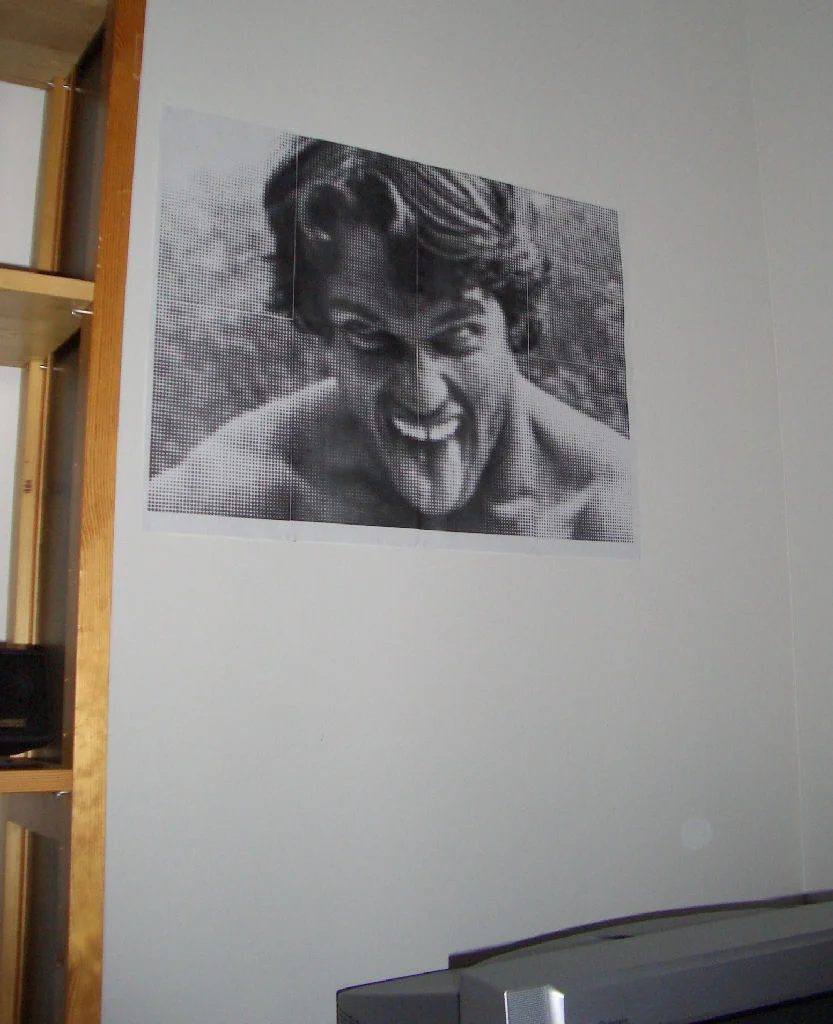 Tuollainen siitä syntyi salin seinää koristamaan... Kyllä on hiano! 6 x 6 x A4 riitti juuri ja juuri että sai Colemanin hartiat mahtumaan kuvaan.