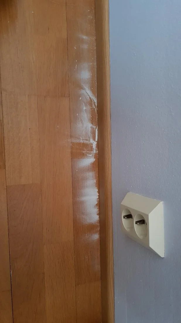 Kellään tietoa mitä hittoa tai miksi tälläistä rakennuspölyn näköistä puskee lattialistan välistä?