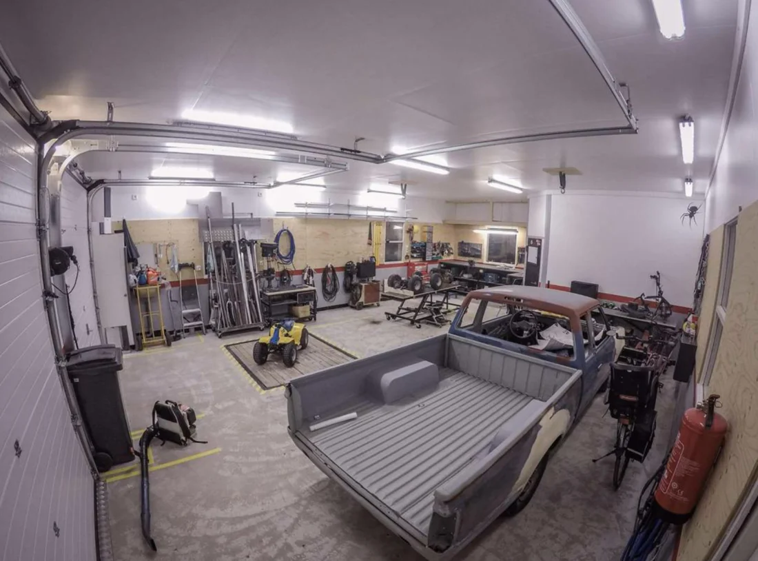 V Studio_20180310_075214.webp anhaa kuvaa, tossa näkyy jotain omia ratkaisuja; vanerit seinillä että saa kamat kiinni, erillinen varastotila maaleille, ym. osille oikeassa nurkassa, työpöytä siellä syvennyksessä. Työpöydässä kiinteät paineilmaliitokset, pari erillistä kelaa puuttuu kuvasta. Yks työpöydän vasemmassa yläkulmassa, toinen oikean autopaikan seinällä. Ovien välissä vesikela ja kelaroikka. Oikealla puolella kaadot lattiassa ja iso kaivo pesuhommiin jne.