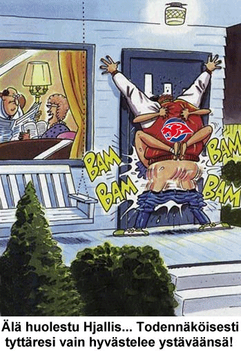 ZweCCo sanoi:Tietääkö joku mistä löytyis sellanen muokkaus tosta nevahoodin laittamasta kuvasta missä on sentään vielä ite mervi kuvassa. Siihen vaan on kirjotettu että "tuolta sa tuli.. ja tuohon se minut löi". Sitten alla lukee vielä että "elämä on laif(tuon if:n kohdalla on vakuutusyhtiö ifin logo)fia"