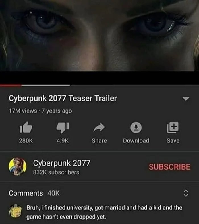 Näyttäis joo siltä.Eiköhän toi 2077 oon alunperinkin tarkottanu julkaisuvuotta?