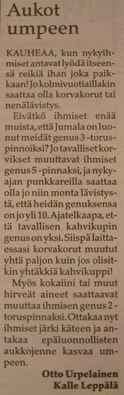 Ai niinku häh?Sukulaku sanoi:Tällainen tuli otettua tämän päivän Turkulaisesta.:lol2: