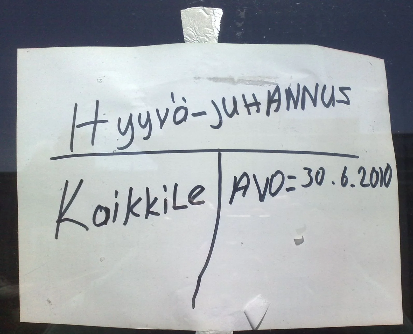 Vähän jo epäajankohtanen, mutta pientä repeilyä aiheutti tämä lappu Parolan pizzerian ovessa juhannuksena.