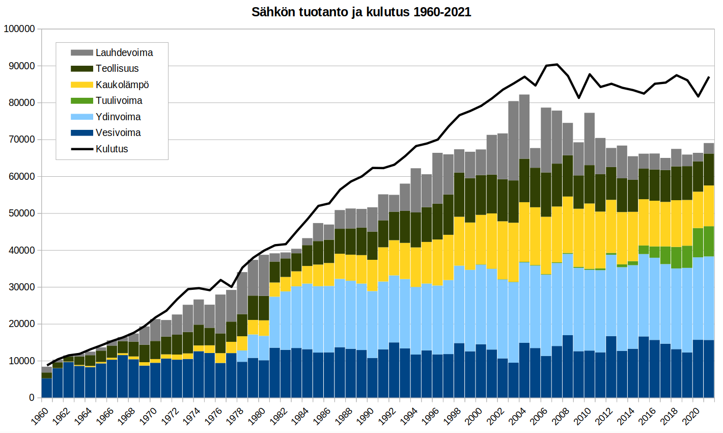 Pari huomiota: miksi kirjoitetaan ”kaukolämpö”? Se on hiili ja maakaasu joilla kaukolämpö tehdään. Sen takia varma, toimiva ja edullinen juttu. Samoin: lauhdevoima. Se on enimmäkseen hiilivoimaa, se on tippunut eniten 2010-luvulla.