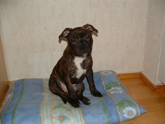 Laittakaahan kuvia uusista staffivauvoista tännekin.N.O.Kummonen sanoi:Tosiaankin tuli se staffi hankittua ja hauva on ollut meillä tänään tasan 7 viikkoa. Eipä ole ollut tekemisestä puutetta.