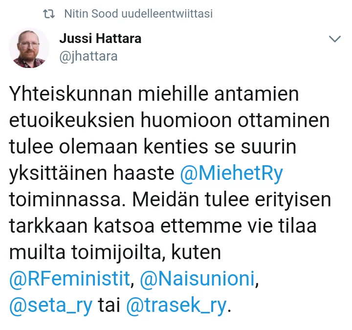 Miehet on kyl ryhmänä haastava tarkastella tuolla tavalla etuoikeuksien vinkkelistä, ku näyttäs että miehillä menee parhaiten, että huonoiten yhteiskunnassa. Jakauma on leveämpi ku naisilla.