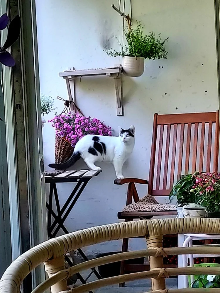 Neiti Kesäheinä tutustumassa parvekkeeseen.