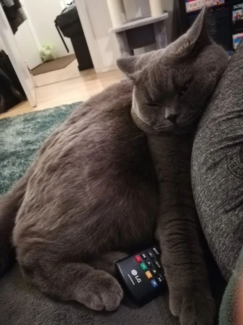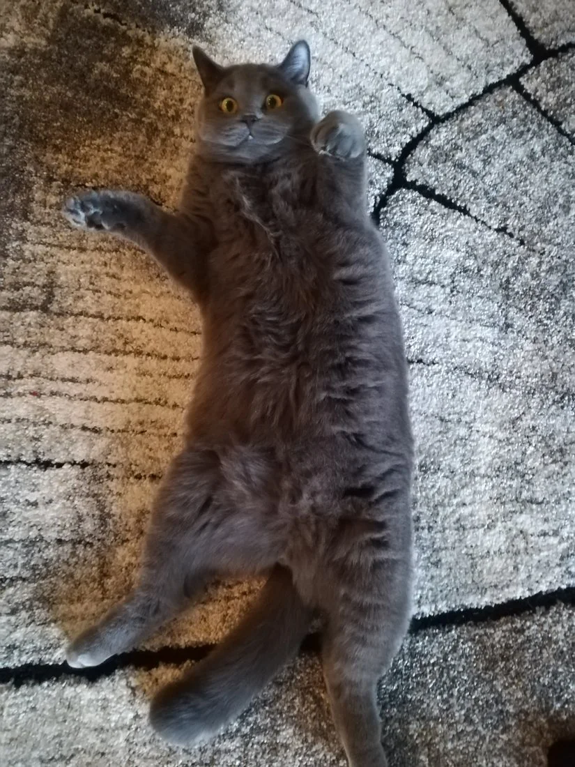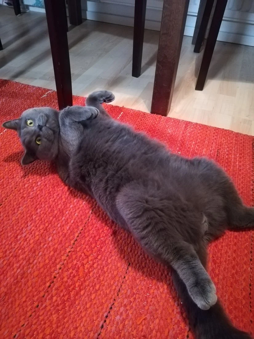Meidän Humu (eli humuskuukka) Rekkujen kautta tullut vuoden vanha lyhytkarva britti, maailman paras kissa! Ominaisin asento on heittäytyä selälleen joka tilanteessa...