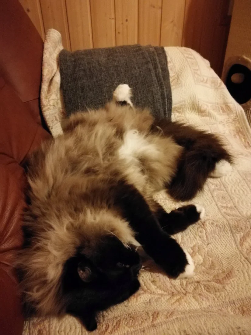 Ei kuva mutta video kun kissa nauttii kun se saa maha rapsutuksia. Etenkin aamuisin ja kotiin tullessani se aina heittäytyy noin ja kerjää rapsutuksia.