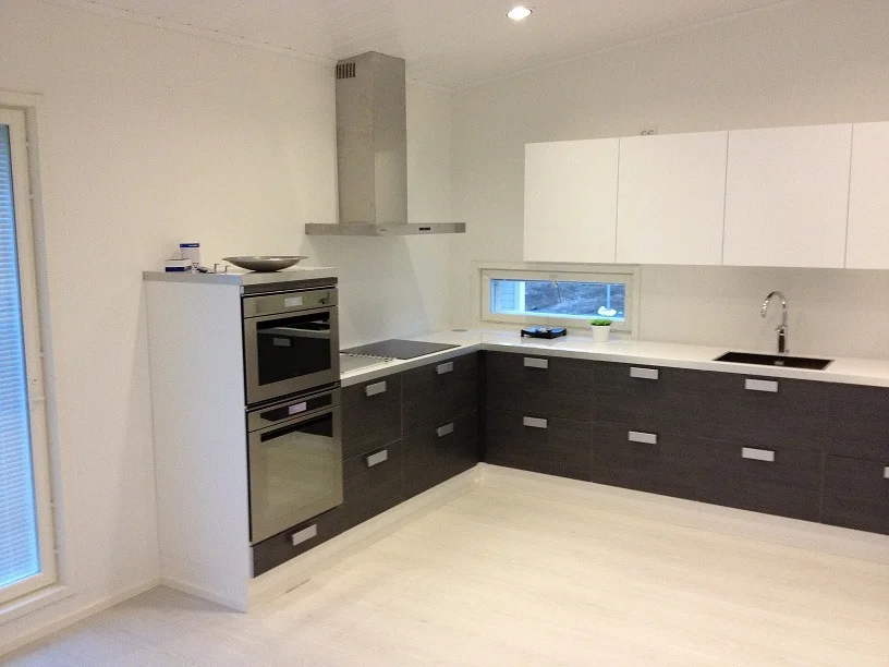 Makuasioitahan nämä.... meillä uuni/mikro yhdistelmä toteutetttiin näin, taisi alunperin lähteä idea siitä että plokataan tuolla hieman näkymää liedeltä olohuoneeseen.
