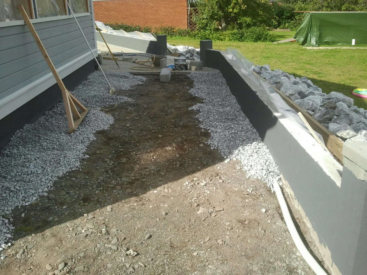 Perjantaista saakka myllätty pihalla kaivurin kanssa ja pikkuhiljaa muutama kulma alkaa näyttämään vähän oikeammalta. Paljon on vääntämistä edessä, hauskaa mutta noiden kivien kanssa pelaaminen on raskasta.