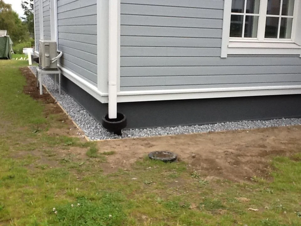 Et varmaan ihan ymmärtänyt mitä kirjoitin (aika yleistä :) ). Meillä sadevesiputki tulee siis routaeristeestä läpi "jossain kohtaa" ja kourun pää sitten "nurkassa". Routaeriste sen saman 30-40cm pinnasta. No, routaeristeestä tuleva putki poikki, siihen heti mutka, sitten vaakaa (kaadolla) ja seuraava mutka 90ast ylös ja sen päässä rännikaivo "oikeassa kohtaa".