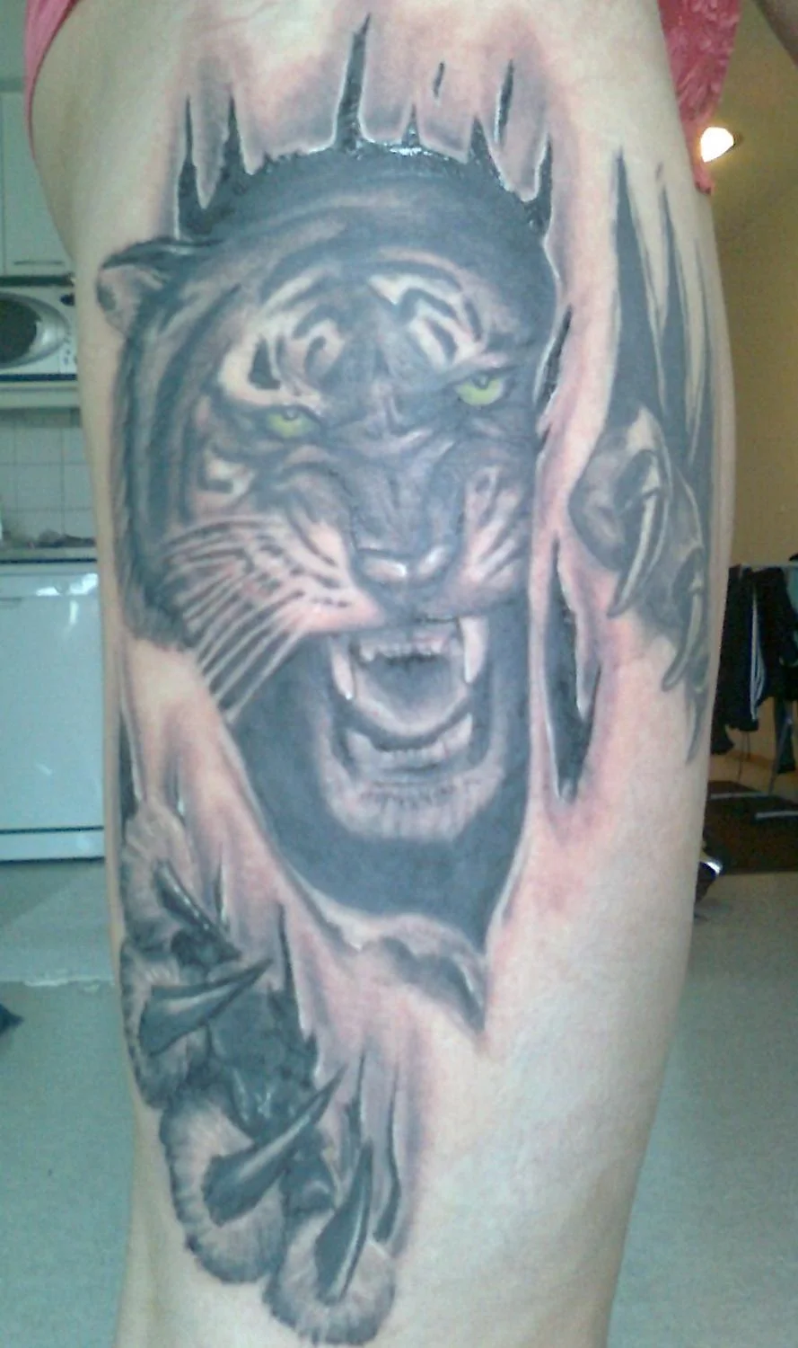 Noniiiiiin. Kairalle kairattiin uutta-vanhaa kuvaa. Ensin oli vain melko yksinkertaistettu tiikeri tunkemassa jalasta ulos, eilen sitten vähän tehtiin lisäyksiä ja mielestäni tämä näyttää nyt kyllä paljon paremmalta.