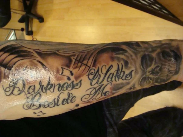 Tossa muutama kuva leimoista tai paremminkin kuvia missä näkyy osa leimoista. Pitää kattoo jos jossain tulevassa promokuva sessiossa napsis vähän selkeemmät tatska kuvat kanssa. Selkä on tosiaan puoleen väliin kanssa täynnä mustetta mutta siitä ei itsellään kuvia ole ainakaan vielä. Sama tilanne on oikean pohkeen kanssa. Seuraavaksi olisi tarkoitus nakuttaa vas. käden hiha sormiin asti.