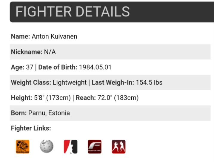 Miten laitat Pacun ennen Kuivasta? Teemulla oli hieno voitto joo, mutta siinä se sit olikin. Anton oli kuitenkin ensimmäinen suomalainen tuolla ja otellu useissa muissakin liigoissa aina pääotteluissa asti ja myös voittanut niitä. Toki sielläkin on noita tyrmäystappiota, mutta on otteluitakin melkeen nelinkertainen määrä.