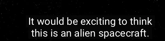 Voi myös ajatella, että - jos kyseessä on avaruuspurje - niin sen lähettänyt sivilisaatio ei välttämättä ole kovin paljon meitä edellä; siksi se käyttää avaruuspurjetta koska teknologinen osaaminen ei riitä aktiivisesti ohjautuvan tähtienvälisen aluksen rakentamiseen. Ihmisellä on periaatteessa teknologinen osaaminen aurinkopurjeen rakentamiseen jo nyt. Käytäntö voi tietenkin olla eri asia kuin teoria, mutta ei tuollaisen lähettäminen meiltäkään kovin kaukana ole.
