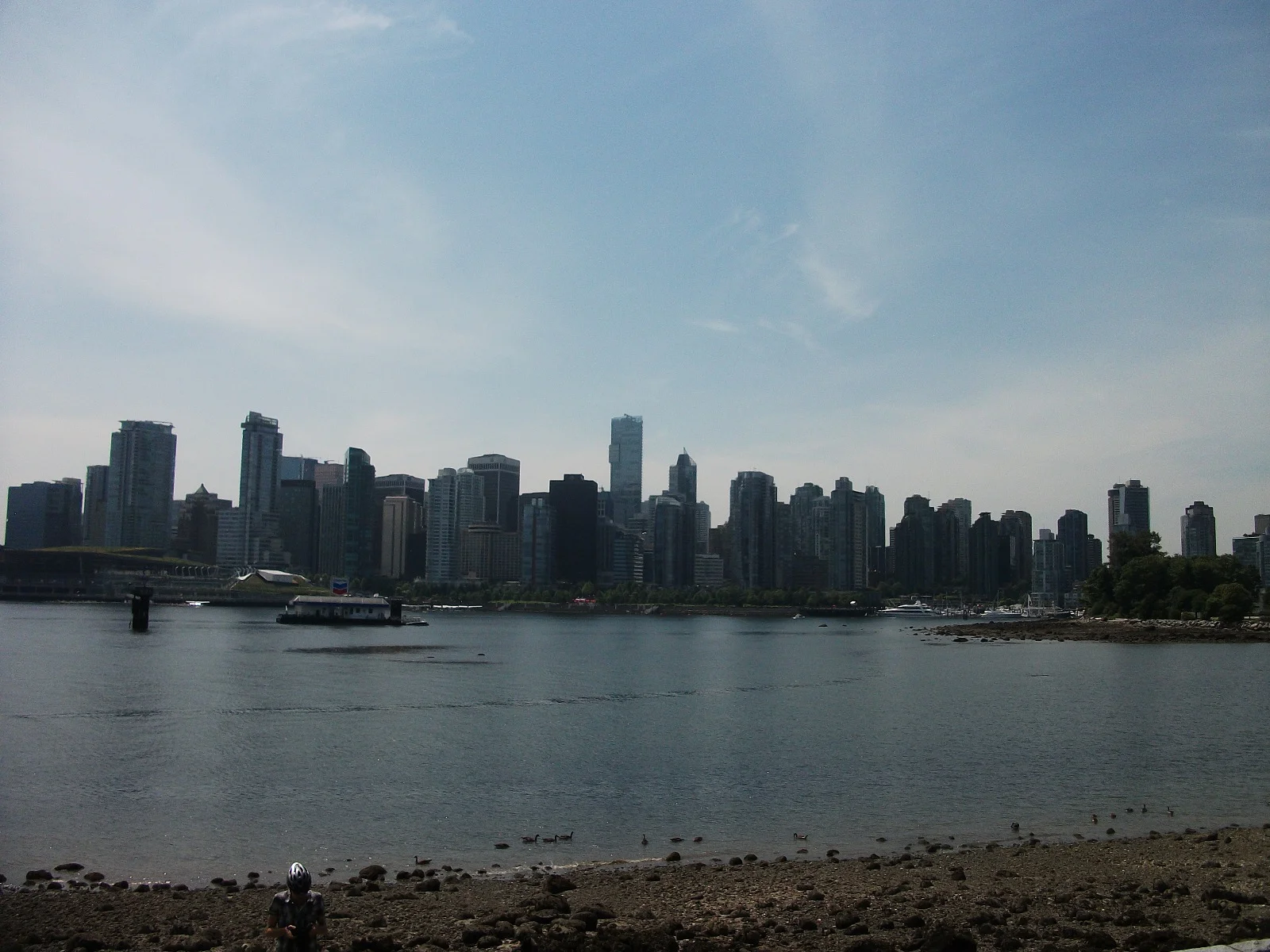 Napattiin aamusta hotellilta pyörät ja ajeltiin Stanley Parkiin. Polkupyöräreitti kulki meren rantaa myöten puiston sisään ja toista puolta rantaa myöten takaisin kaupunkiin. Kuvittelin Stanley Parkia enemmän puistomaiseksi, mutta se osoittautuikin havumetsäksi keskellä kaupunkia. Puiston sisäosiin emme käyneet tutustumassa, mutta mukavalta keitaaltahan tuo vaikutti. Rannat olivat ainakin täynnä ihmisiä, jotka ottivat aurinkoa tai urheilivat Cross-Fit -henkisesti. Kuntosaleja, Cross-Fit-saleja, kamppailulajipyhättöjä näkyi tuossa Vancouverin keskusta-alueella kohtuu reilusti. Eli siellä lomailevan ei pitkältä tarvitse treenipaikkoja hakea... Muutenkin tuo keskusta-alue oli miellyttävää, lukuunottamatta kodittomia ja narkkareita. Ravintoloita oli paljon, hintataso edullinen (20 palaa sushia viisi euroa) ruoan osalta, kallis juoman osalta.