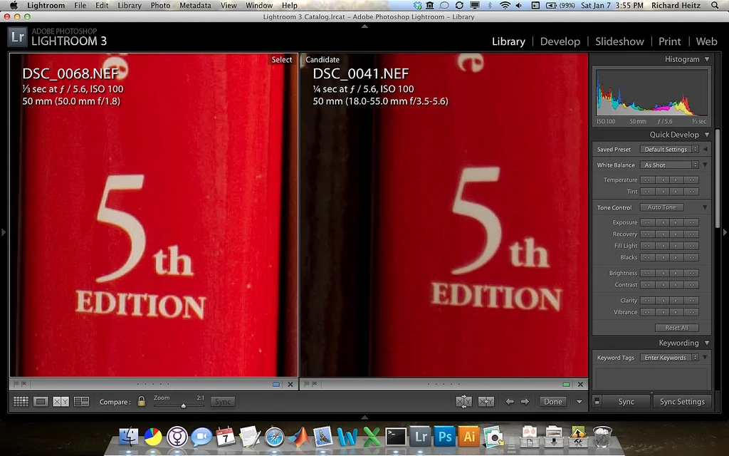 Sama valotus ois kova jos samalla aukolla vertaillaan. 50/1.8:lla on valotettu kuitenkin aika lailla pidempään. M-moodissa sama aukko ja suljinaika niin sitten näkis jo vähän paremmin eroa ja silloin valotuserotkin kertois todellisesta T-luvusta jotain?Eihän tuo nikonin uusin 18-55 edes ole kovin huono jos muovisuutta ja valovoiman puutetta ei lasketa.