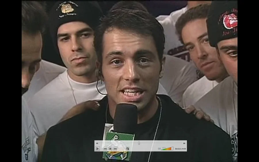 Mä kattelin ensimmäisen UFC:ni Filmtownista vuokratulta VHS:ltä ja tuo taisi olla joku kokoelma ensimmäisistä UFC turnauksista. Muistan kun kaverin kanssa sitä alettiin puolitietämättömänä kattomaan ja ensimmäinen ottelu oli legendaarinen Gerard Gordeau vs. Teila Tuli. Gordeau potkasee 20 sekunnin kohdalla kontillaan olevaa Tulia roundhousella suoraan suuhun sillä seurauksella että leegot vaan sinkoilee pitkin häkkiä. Muistan kun kaverin kanssa jäätiin tota tuijottamaan ihan monttu auki et mitä **ttua tää on!!!?? Samalla nauhalla oli mm. Emmanuel Yarborough vs. Keith Hackney mikä sai kanssa leuan totaalisesti putoomaan lattiaan. Siinä matsissa tuli oikeesti pelättyä Hackeyn hengen puolesta.