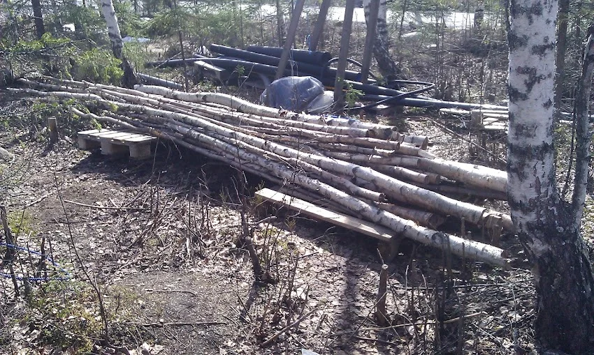 Nuot siis hain tuosta vastapäisestä metsästä. Ensin vesurilla oksat poikkeen ja kanto pihaan.