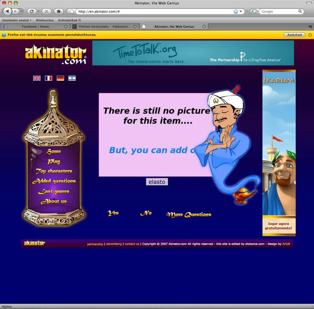 Tai nyt se sitten arvaa heti, koska kerroin masiinalle jokaisen virhearvauksen jälkeen oikean vastauksen.Helpostihan tuo Nykäsen arvasi. Ettet olisi vastaillut väärin;)
