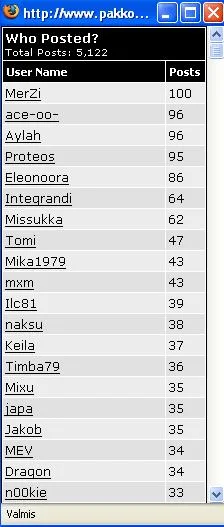Ehkä mä olen noussut noin ylös sen yhden OT yön seurauksena.. :D Mä olen kyllä huono häviäjä, joten pakko yrittää päihittää Merzi sun muut! :evil: :lol2: