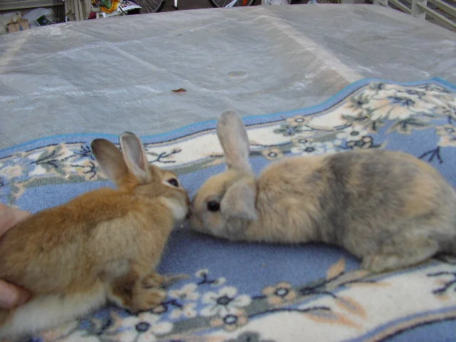 Tässä lempi leiskuu. Eppu ja Tessa tutustumassa toisiinsa. Tais siinä muutama "pusu" vaihtua :love: ... Sitten vähän viileämpää Pullan ja Fannyn välillä, yks "avioero"-kuvakin.