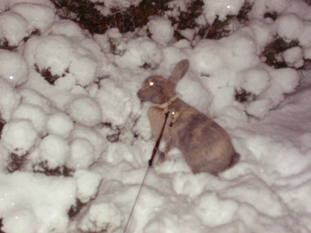 Kunnon ensilumi tuli sitten Helsinkiinkin. Käytiin pupukatraan kanssa pihalla. Kaikista en saanut kuvia, mutta tässä joitain. Kaikki ristiturvat tykkäsivät olla ja ne piti "puoliväkisin" kantaa sisälle, kun olisivat varmaan koko päivän viihtyneet, valitettavasti emäntä ei vaan jaksanut. Ekaksi olin 30min/pupu, kaikki siis erikseen. Ja sitten vielä tunnin parin paussin jälkeen se sama 30min kahden pupun kanssa, yleensä parin kanssa eli ekalla kerralla Eppu ja Tessa ja tokalla Pulla ja Fanny. Kivaa oli :). Sekä pupuilla että emännällä.