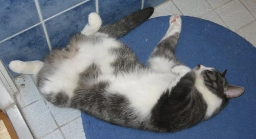 Tässä meidän apinat.. ei varmaan kiinnosta ketään muita kuin kissafaneja. ;) Mutta kyllä on sitten tuo lattialämmitys suosiossa... koko kylppäri on aina suht lämmin, joten molemmat marakatit vetelee hirsiä siellä. Arska näyttää harvinaisen friikiltä tuossa unikuvassaan - luulis että on hankala nukkua noinkin hämärissä asennoissa?! Välillä oikeasti on pakko miettiä, että onko tuo edes kissa vai joku ihan muu... Willis taas on tuommoinen suloinen maatiaispallero joka ei siitä muutu vaikka voissa paistais. :haart:
