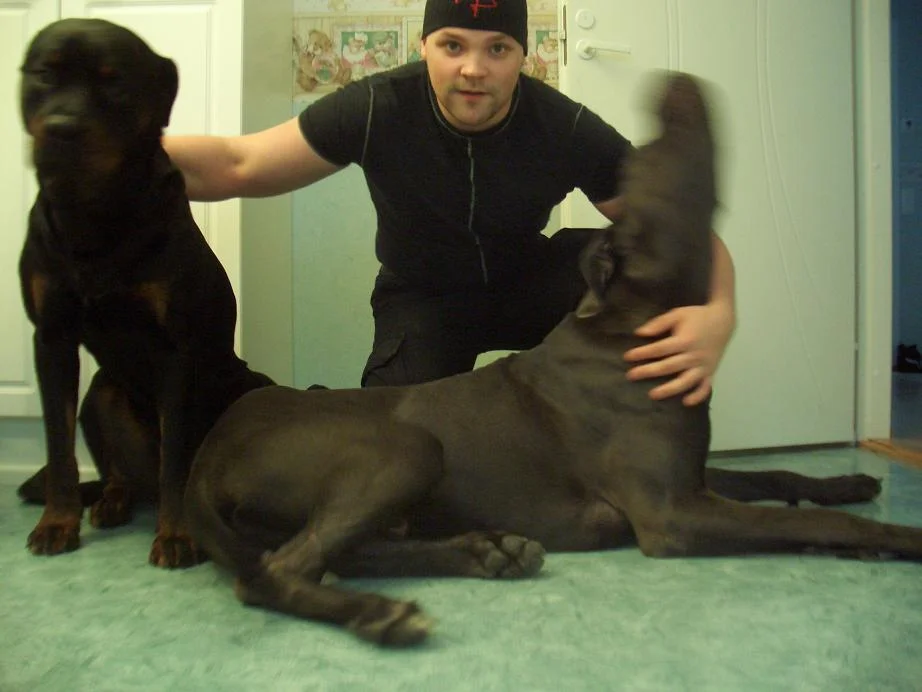 Itseasiassa rotikka on opettanut oikean luonteen dogille joka on nyt aika "kova" jätkä noin urosten kesken ihan oikeasti. Kertaakaan en ole sen nähnyt antavan periksi enää kuukausiin. Vielä se väistää joissakin tilanteissa juuri Rekoa (toi rotikka) kun se on niin paljon vanhempi mutta kunnon kiistoissa ja välienselvittelyissä ei periksi anneta. Ja muille ei periksi anneta ollenkaan. Ja suojelusviettu on dogille kans kehittynyt todella vahvaksi... Auto heiluu kun joku tulee liian likelle :)