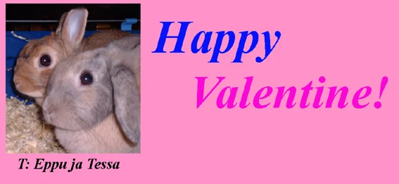 Pitkästä aikaa taidan piristää teitä pupukuvalla. Ajankohtaisesti Ystävänpäivä-toivotus, nopeasti väsättynä.