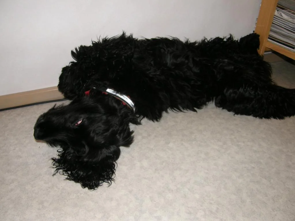 Tässäpä sitten pentu noin 7kk iässä. Tuo nukkuminen on varsinaista taidetta kun tuollaisissa asennoissa tykkää olla.