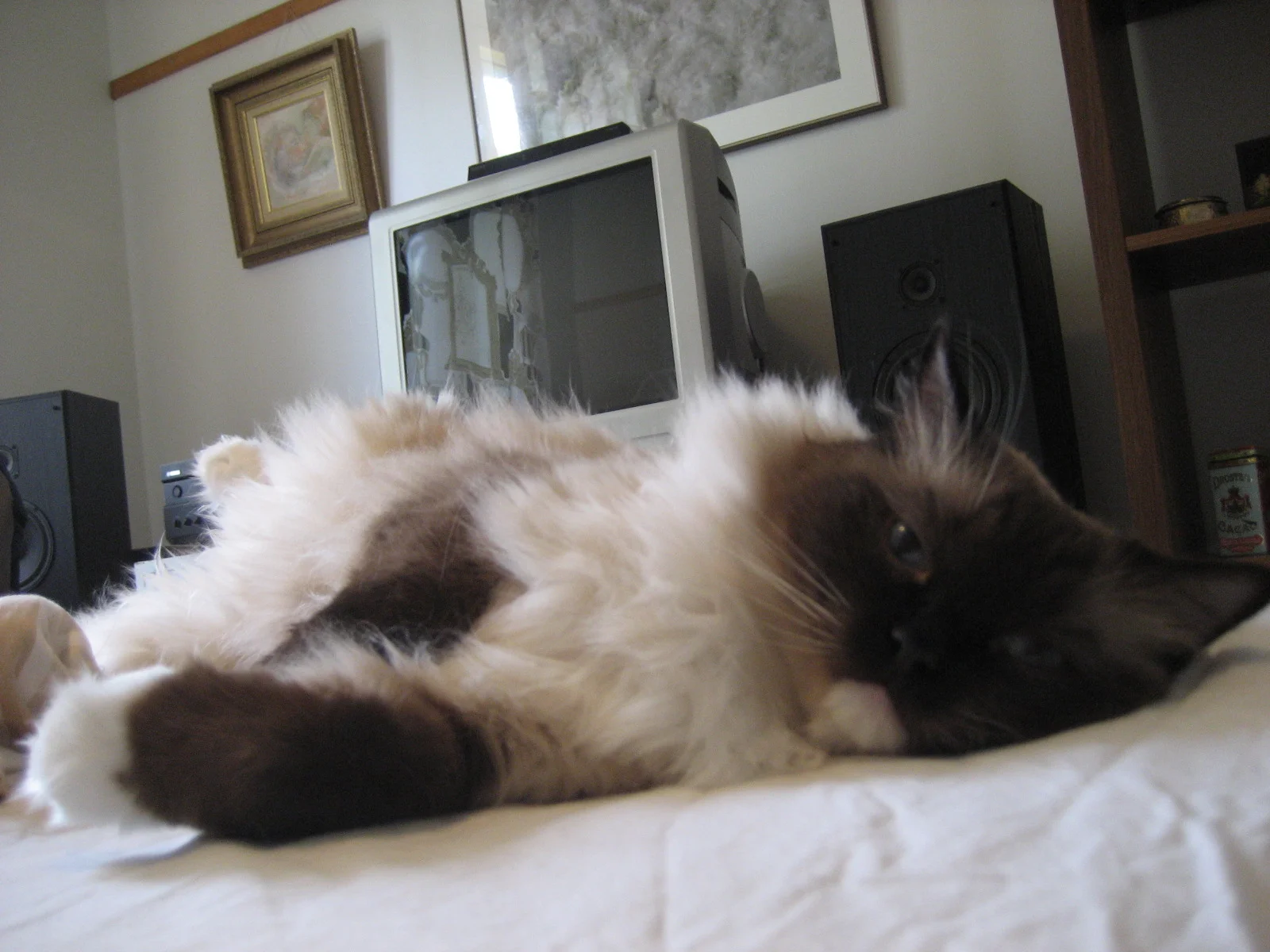 Pari uutta kuvaa ragdoll-kissastani Kirpusta. Ikää löytyy vajaa 3 vuotta, painoa vajaa 6 kg eli varsin keskikoinen, ellei jopa pienehkö karvakasa. Hyvin rento kaveri on kyseessä, kuten kuvista näkyy! Öisin se kyllä usein intoutuu aarioihin keittiön pöydällä ja omistaja kiittää. :D