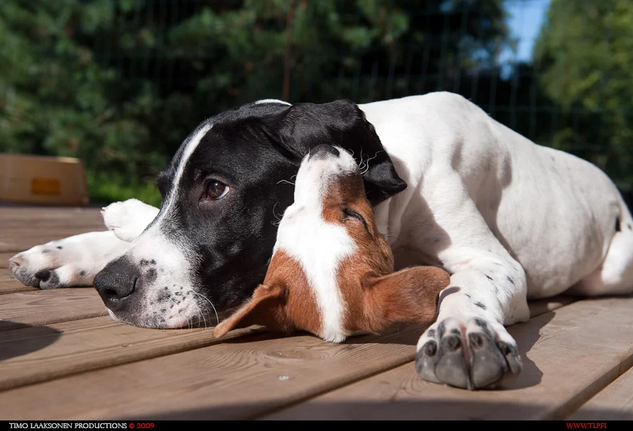 Hyvin on mennyt meilläkin, molemmat koirat osaa käyttäytyä nätisti eikä nosta rähinää, ellei sitten leikkimielistä. Ja se on aina yhtä hauska näky, kun muut koirat haluaa haistella meidän Maraa, joka ei kamalasti taas välitä. Se on niin saatanan nopee kintuistaan, ettei ne pysy ikinä sen perässä :)