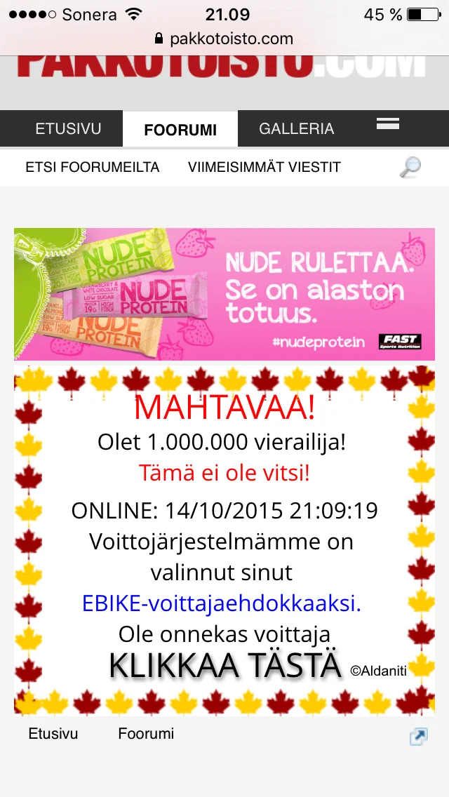 Asia selkeä.Eikä tosiaankaan ole pakko lukea, kannattaa mennä saiteille, jossa tulee pop uppia naamalle.