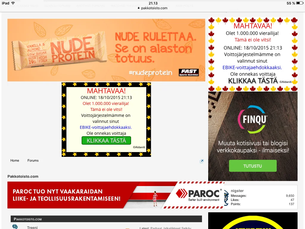 lol, kyllä tuota vaan sattuu, mutta hyvä asenne. Oisit toki voinut ottaa onkeesi ja optimoida mainoksia tms. Olkoot sitten, onneksi ei oo pakko lukea.Onneksi noita nyt ei samaan aikaan usein satu. Mut toki kun kerran osuu kaikki mainokset kerralla, niin siitä pitää toki tänne ilmoittaa kuin se olisi 24/7. Perussettiä.