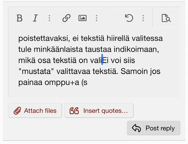 Android?Tästä joku taisikin aiemmin manailla, mutta mistähän johtuu että kun kännykällä koittaa kirjoittaa ja painaa kirjoitusvirheen sattuessa kumittamista niin se poistaa sut kirjoitusmodesta? Ihan hemmetin ärsyttävää ja en kännykällä siten jaksa enää juurikaan kirjoitella. Muistan että tästä muutkin kirjoitteli mutta huutelisin sen perään että saikohan ne ratkaistua sen jotenkin.